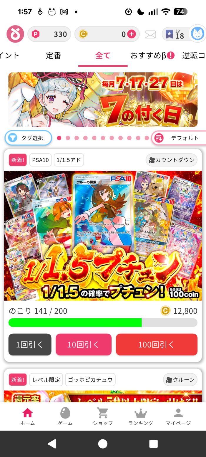 2. 得たポイントで再度ガチャを引く